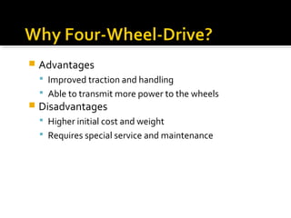 Web Disadvantages include that AWD cars are not gas efficient are more. All-wheel drive offers several.